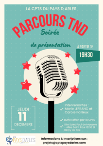Mme Lefranc Mme Marty L’état de ce compte est « Approuvés » À propos À propos Publications Publications Commentaires Commentaires Badges Badges Soirée Parcours TND enfants : Présentation du projet de santé 2026-2031 le jeudi 11 décembre 2025 à partir de 19h30 – A Saint Rémy de Provence – Inscription obligatoire Il y a 1 semaine dans : Actualités aucun commentaire La CPTS du Pays d’Arles sera fermée du lundi 22/12/2025 au dimanche 04/01/2026 Il y a 1 semaine dans : Actualités aucun commentaire